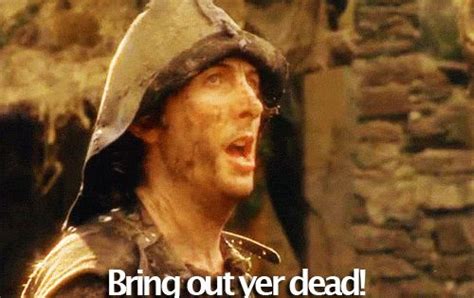 Man #1 collects the dead during the plague, pulling a cart: “Bring out your dead!”
