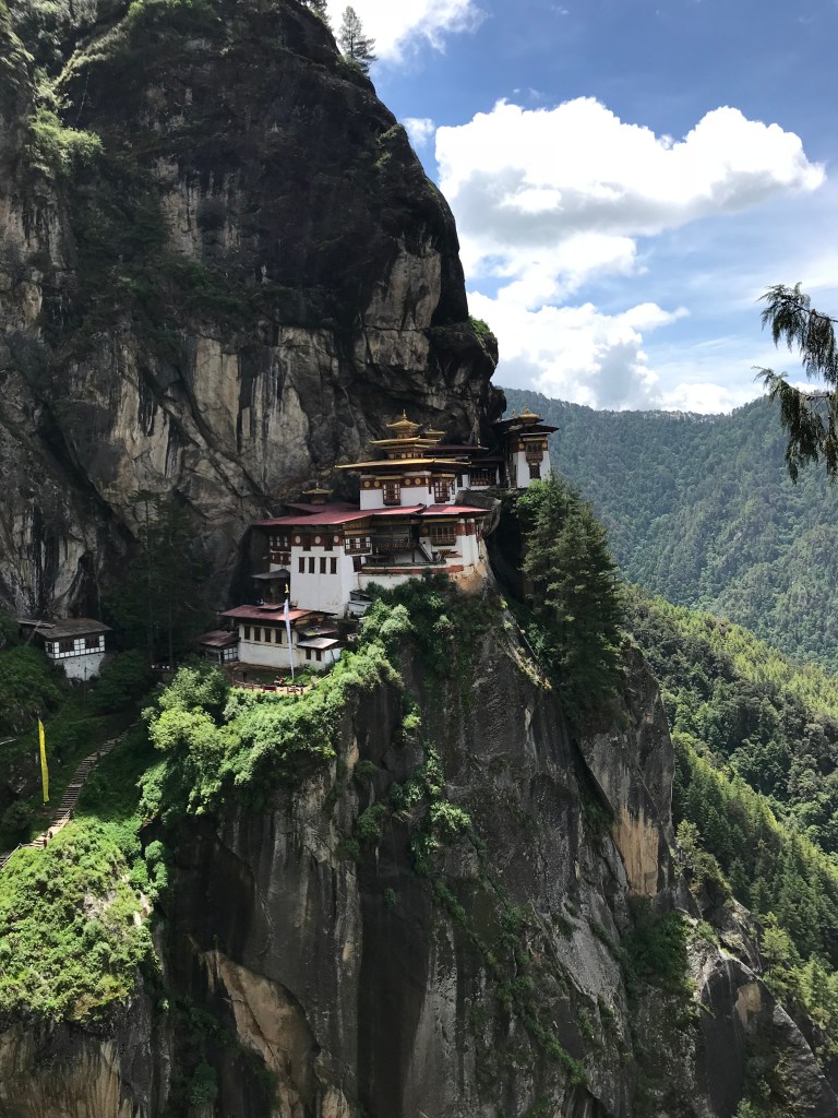 Pretty quickly after starting my hike to Taktsang, the Tiger’s Nest, I headed off on the “short cut” a steep climb up to the tea house that overlooks the Temple complex. The trail climbs up and in places the dirt is slippery, my shoes not biting into the soil. I slip, a little, and continue my ascent. Around me are fellow pilgrims, pushing up the trail. I met a man from Darjeeling, a couple from Singapore, two Indian soldiers off for the weekend, and a grandmother from Taiwan. Here we were, all together, taking this challenging path to the Temple, grateful for the cloudy skies and slight chill in the air.